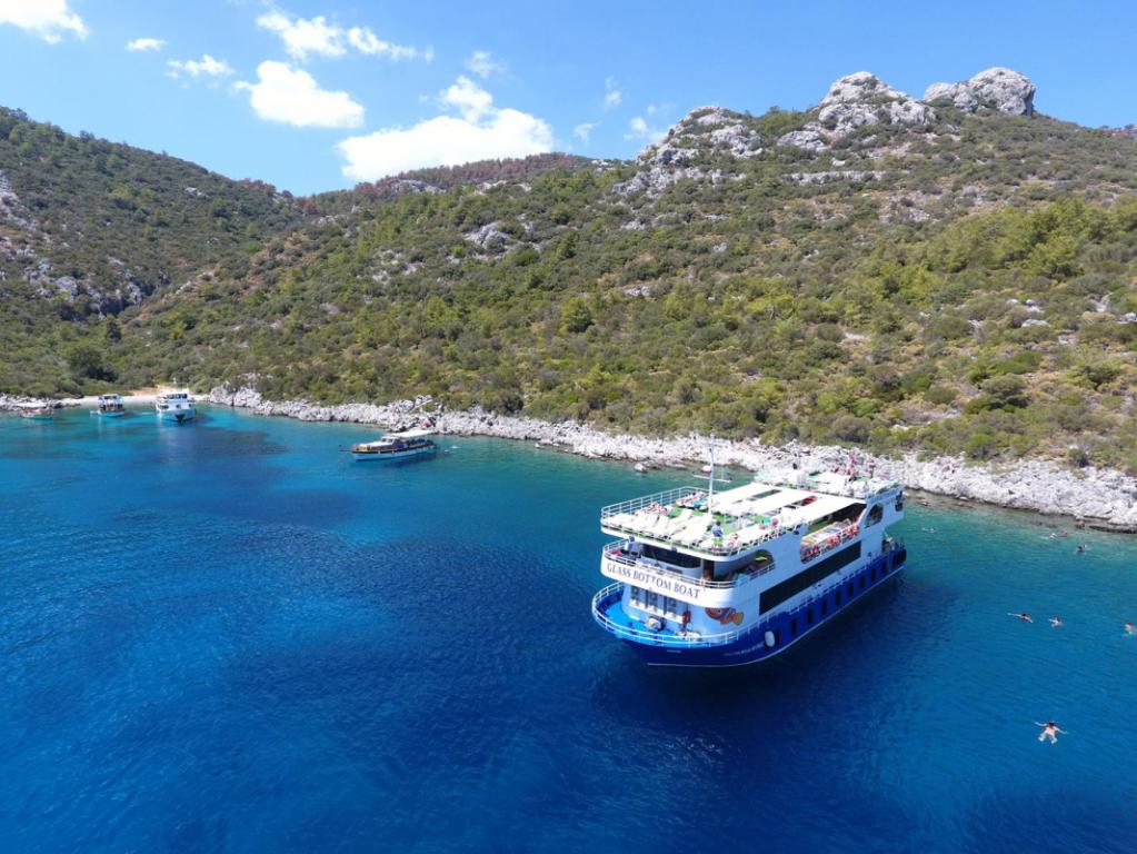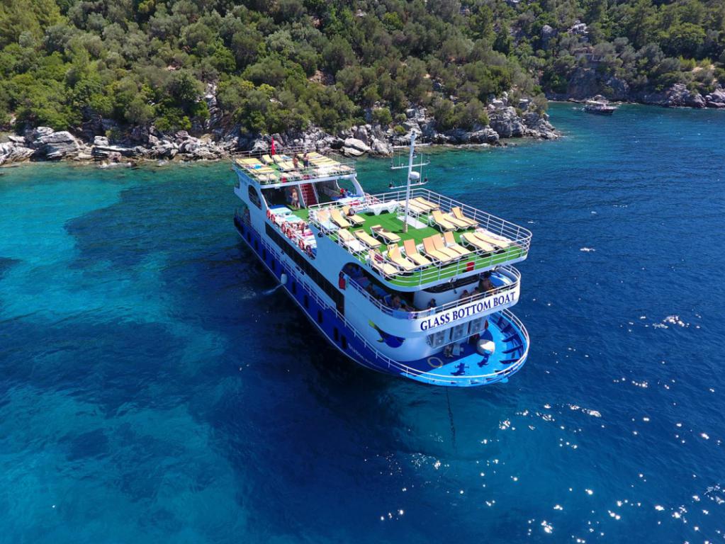 Yarı Denizaltı turu dalışa gerek kalmadan ve ıslanmadan Akdeniz'in sualtı dünyasını keşfetmek için süper bir fırsat sunuyor. özel olarak tasarlanmış tekne cam pencerelerden batık gemi, amfora, balık ve sualtı bitkileri gözlemleyin.