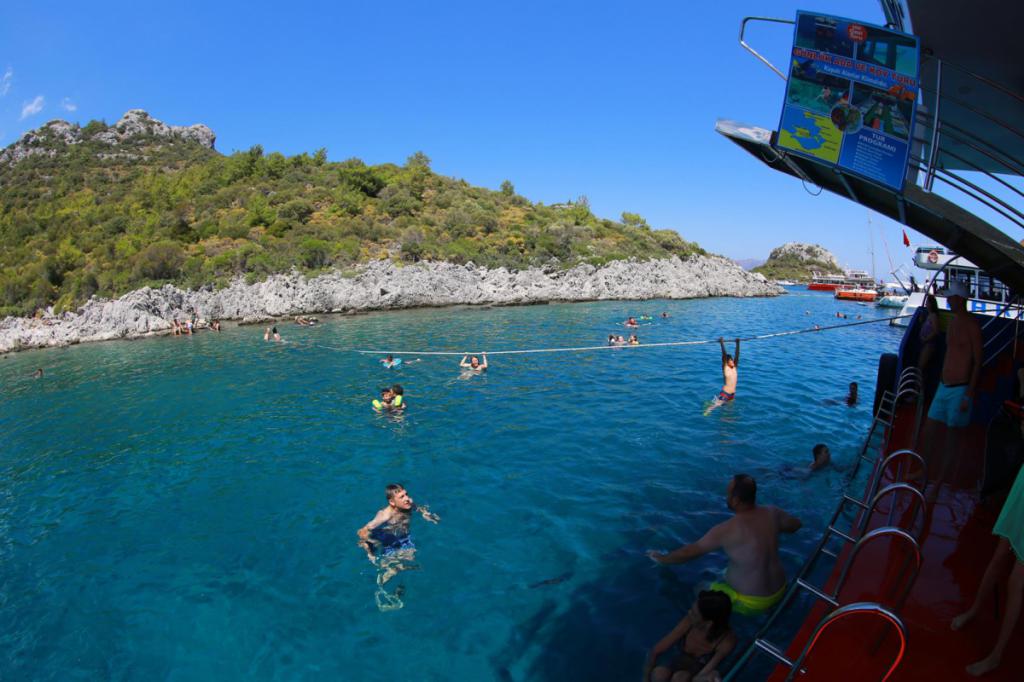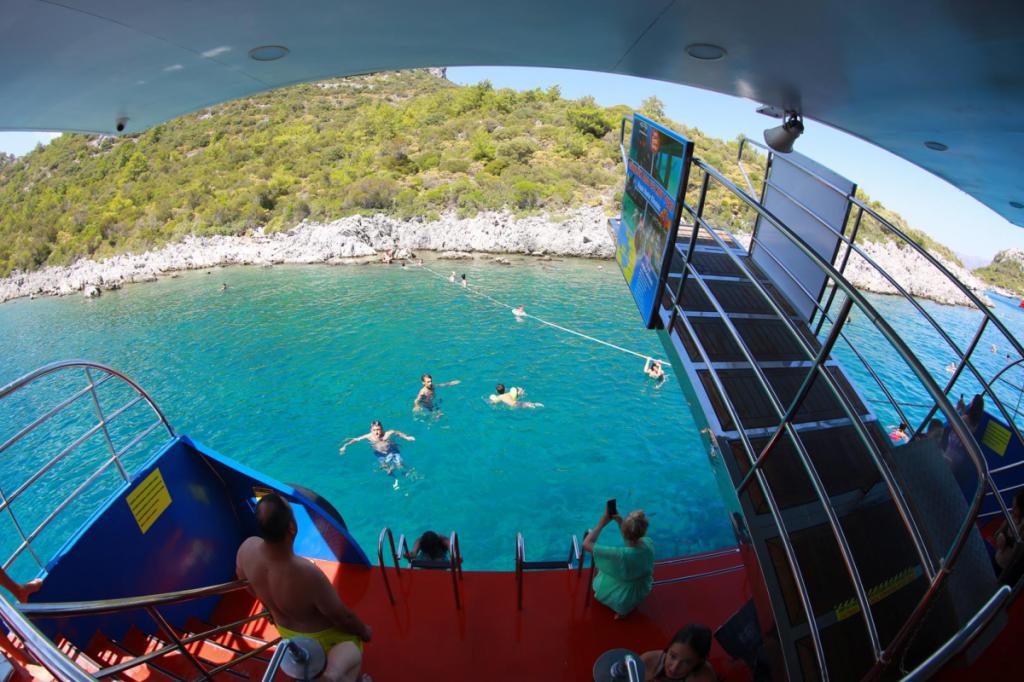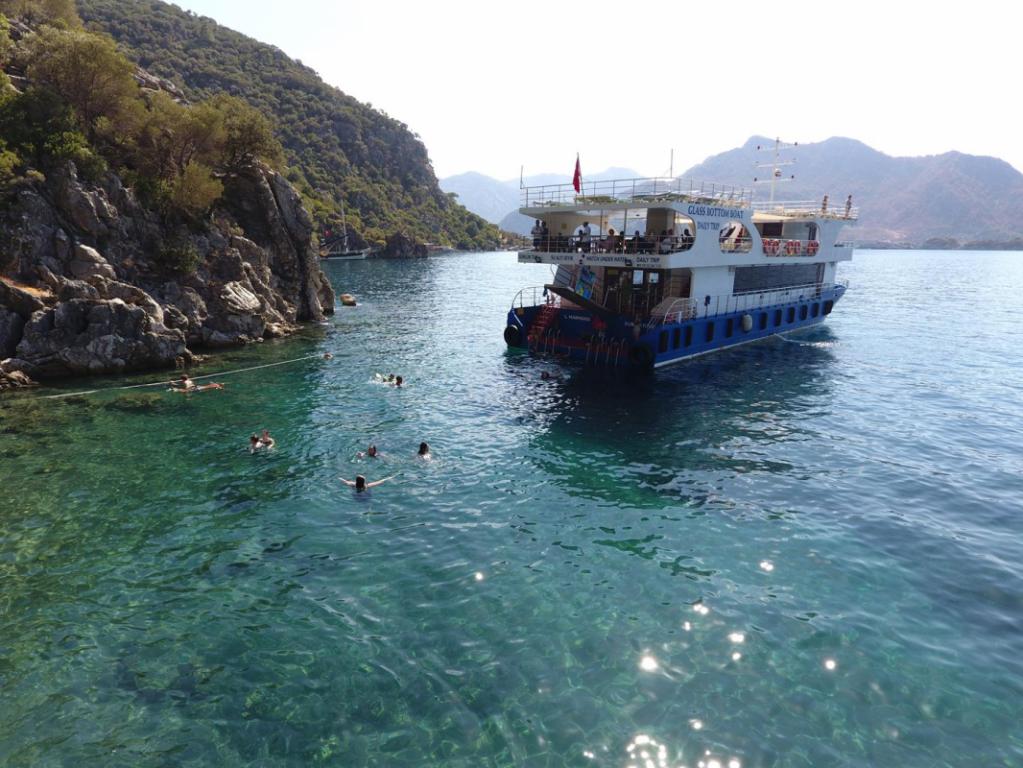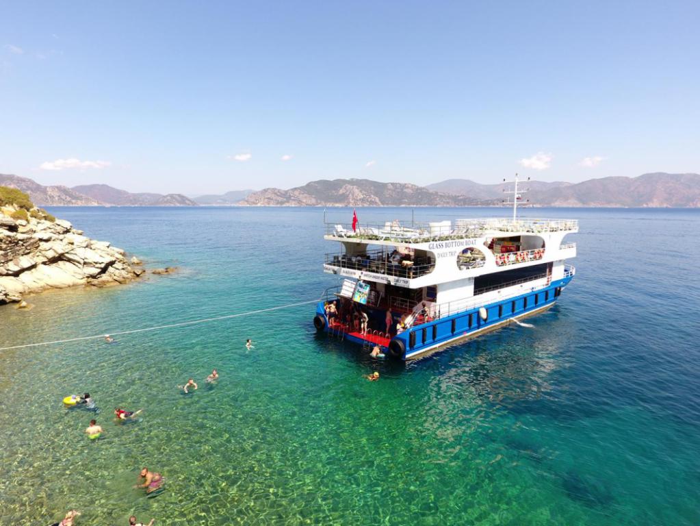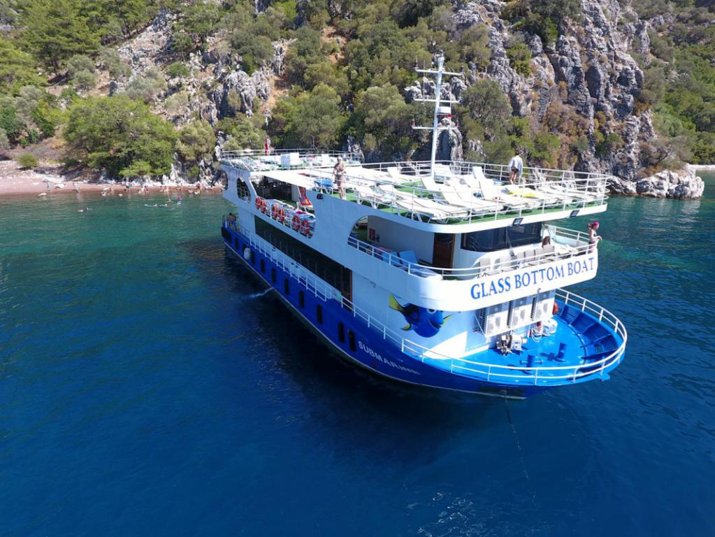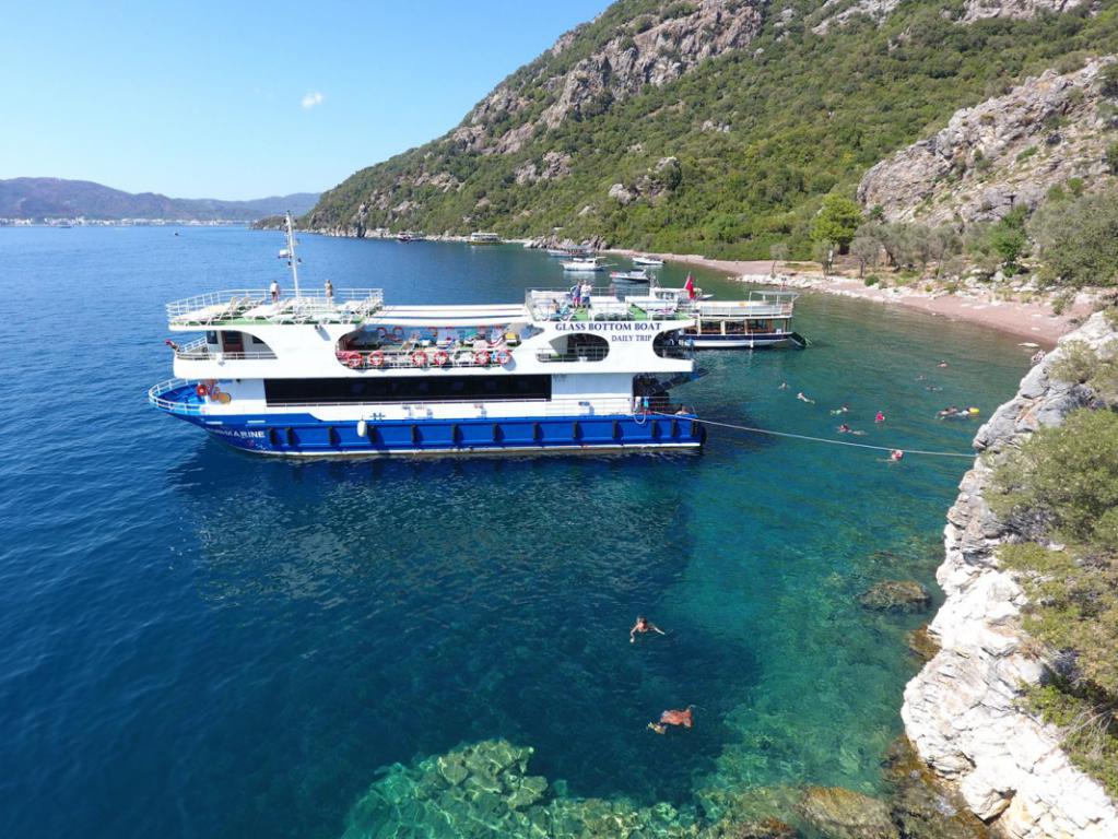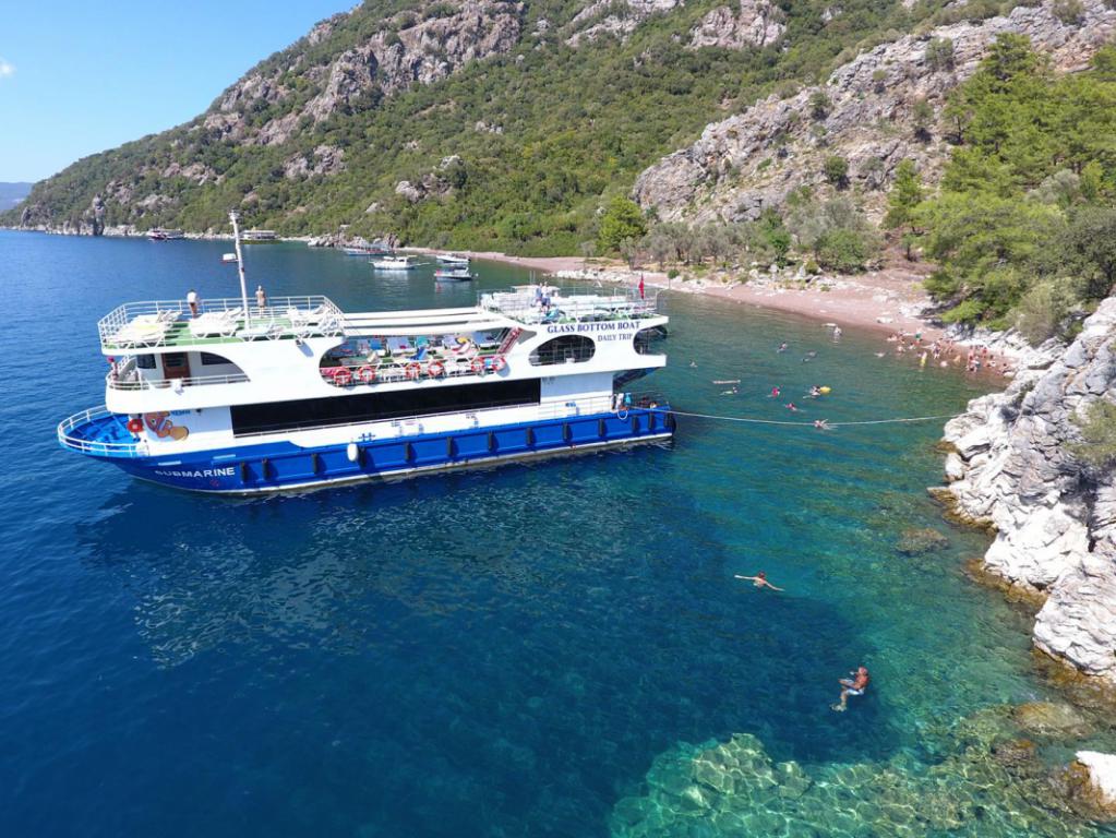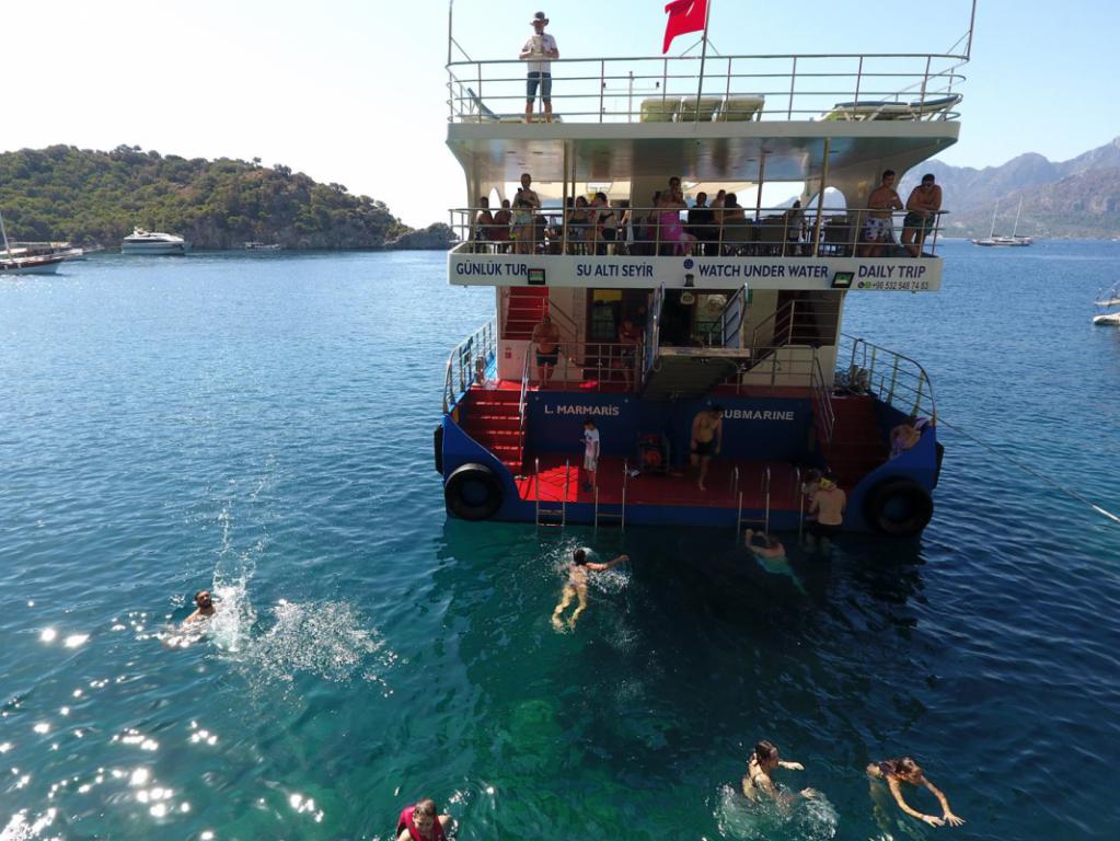 Marmaris konaklamanız sırasında yapmak için yeni bir şey mi arıyorsunuz? Islanmadan Akdeniz'in sualtı dünyasını keşfetmek için tam günlük yarı denizaltı turuna katılın. Tur Marmaris ve İçmeler otellerden bir servis ile başlar. Özel olarak tasarlanmış bir tekne saat 09.30'da limandan kalkar. Marmaris ve çevresindeki adaların güzel koyların, turkuaz sularında bazı sualtı gözlem noktalarında ve yüzme için birkaç kez durarak keyifli bir gün geçirmenizi sağlar. Sadece iki kat aşağı gidin ve inanılmaz bir sualtı dünyasında kendinizi bulacaksınız. Teknenin gövdesindeki cam pencerelerden balık,sualtı bitkileri ve doğal güzellikleri gözlemlemek mümkün. Muhteşem koylarda bulunan batık,anfora ve sualtı güzelliklerini izleyebilirsiniz.. tur sırasında üç bazen dört yüzme molaları vardır. Her durak yaklaşık 45 dakika dır. sualtı nın gözlem keyfini çıkarın ve Akdeniz Denizi'nin turkuaz sularında rahatça yüzün.